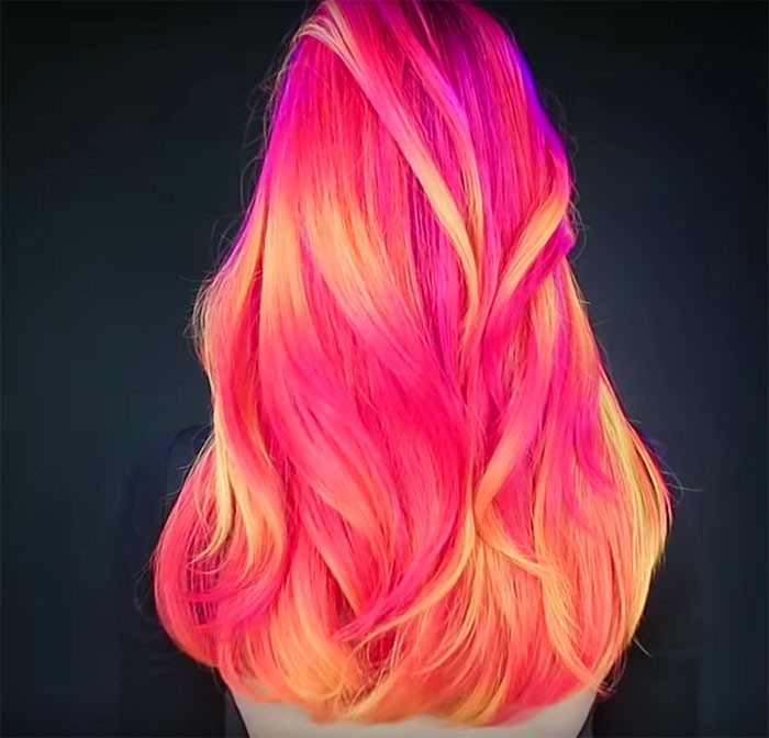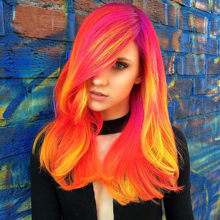 This effect is not easy to achieve, so make sure that this hairstyle works for you professional hairdresser. The hair must first be bleached, and then carefully dyed with unique ones neon colors, which create a dramatic look.