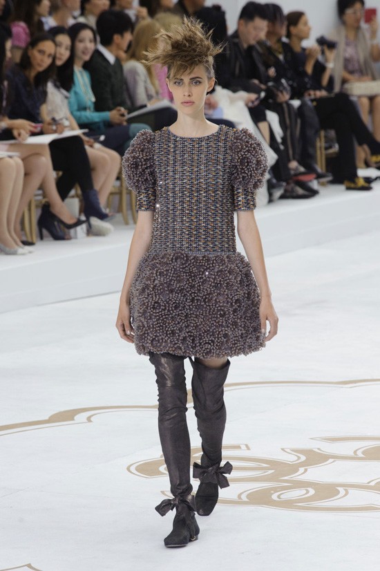 Karl Lagerfeld is the inspiration for the latest haute couture looked for the autumn-winter 2014/2015 collection from the famous French architect, who has already inspired many - Le Corbusier. The collection he named "Le Corbusier goes to Versailles", consists of prestigious fashion pieces that definitely deviate from any kind of minimalism. Detailedly decorated clothes, among which of course we also find some tweed ones, impress with precisely arranged crystals, fringes and feathers. This time, the most attention was stolen by excellent low sandals that will wrap our ankles in luxurious bows. Magical!