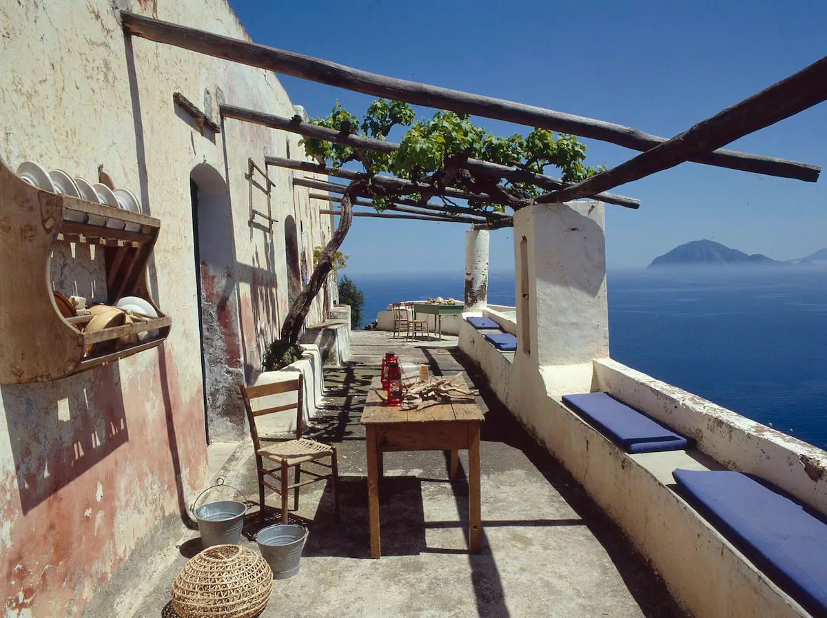 Alicudi is one of the eight islands that make up the Aeolian Archipelago, a chain of volcanic islands in northern Sicily. The aforementioned island is perhaps one of the most recognizable, and there are no roads or cars on it, and all your luggage is taken care of by mules. Above the turquoise Aeolian Sea rises a modest but charming villa, which illustrates the wild character of the island. The simple villa will certainly not leave you speechless, at least not with its long dining terrace, from which magnificent views of the sea horizon stretch out.