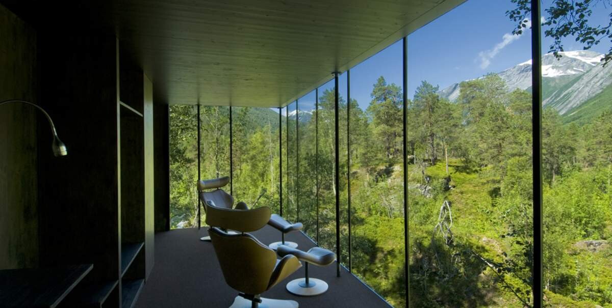 Hotel Juvet Landscape, which appears in the fourth season of the popular series, is surrounded by an unforgettable landscape, so it is no wonder that it caught the eye of the creators of the series in no time. It is located in Valldal Valley on Norway's northwest coast, boasting uninterrupted views of the surrounding birch forest, stunning minimalist architecture and a glass-fronted spa.