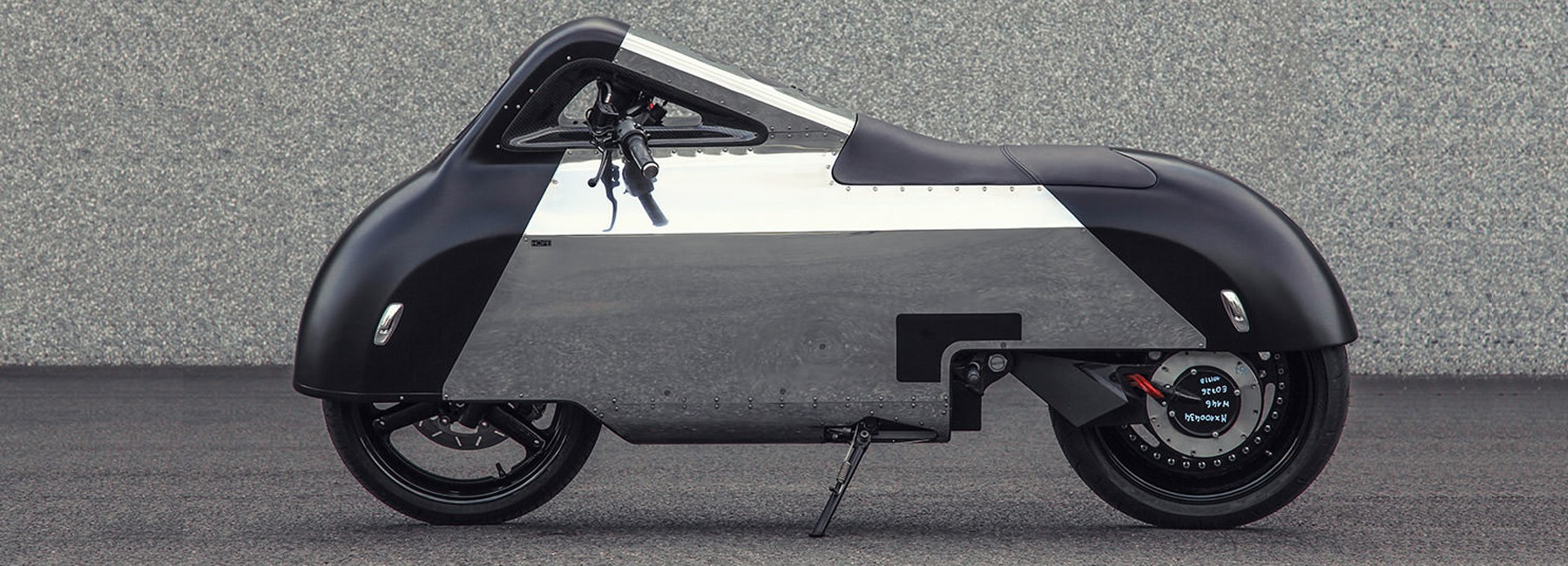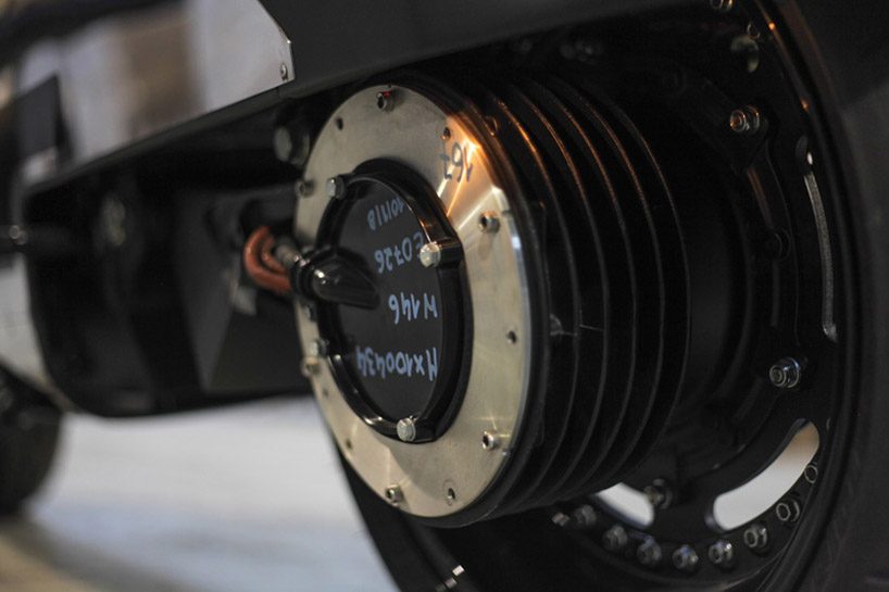 Maxi scooter Hope uses the same electric drive, as the VX-1 has. This means that its maximum speed is 120 km/h, and with a full battery, it is able to drive up to the theoretical ones 280 kilometers. The designer says it is a Hope scooter a mix between an old Porsche 356, a modern iPhone and a fantasy Pokémon. At first there were sketches, then 3D-models, which later moved to the stage of real production. The basic frame of the scooter is made of steel rods, to which the fiberglass components are attached. The front and back are covered in black, while the central part has glitter aluminum surface. The part around the steering wheel was made from carbon fiber, and the meters were installed in laser cut piece of aluminum.