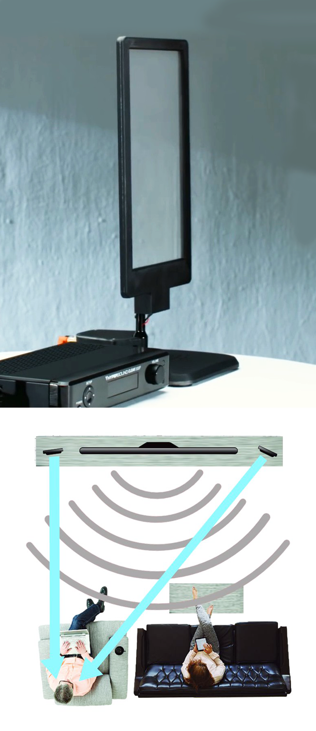 HyperSound Glass they are speakers with sound just for your ears! Like headphones! When directing the sound, they are as precise as Rajmond Debevec with his small-caliber rifle, and they deliver the sound from the player only where you direct them, and in the meantime they do not "spill" the sound, because they know how to emit it in very narrow bands. Turtle Beach presented this graphically on the example of a lamp and a beam of light.
