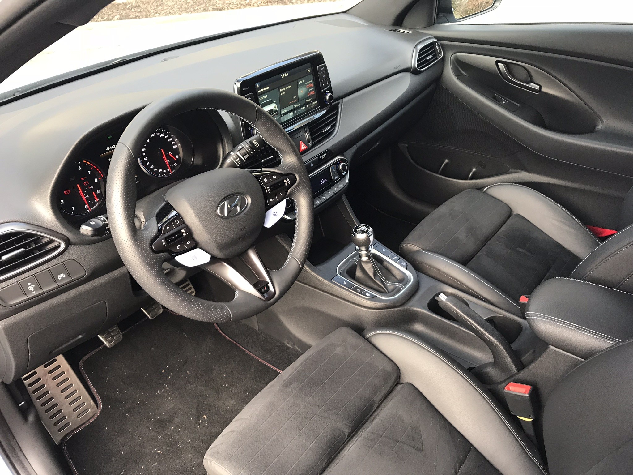 The i30 N has specially adapted instrument panel, on which we can monitor data such as oil temperature, turbocharger readiness, engine temperature and other important "racing" data. We have available 8 inch touch screen, through which we manage settings, navigation, music and more. Sports seats we can think of a combination of leather and fabric or completely made of fabric. They have good lateral grip, and here too you can't go without the N logo. The steering wheel was also designed specifically for the i30 N and has noticeable buttons for selecting the driving profile or the selection of sports or driving mode N. Other technologies include wireless phone charging and Android Auto support and Apple CarPlay.