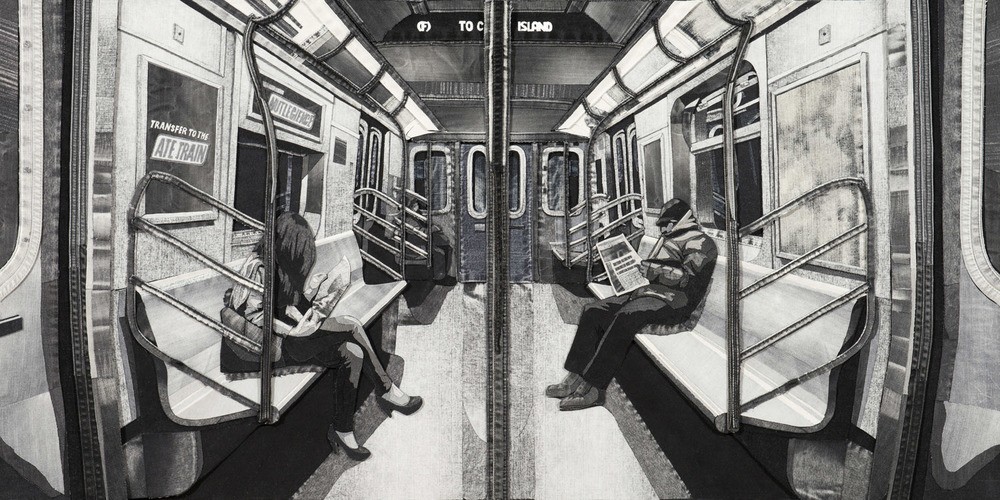 By skilfully combining pieces of different shades, he makes amazing detailed art paintings. His works focus on melancholic scenes of the urban environment and outline the less glamorous side of city life.