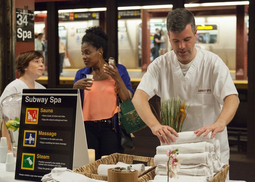 Spas, spas, spas, whatever you want to call them, are modern remedies for the modern disease - stress. They are usually located in superbly equipped rooms, where people retreat from the daily routine. A Improv Everything tried something new in New York - with an improvised underground spa center. Who said spas only belong in quiet spaces?