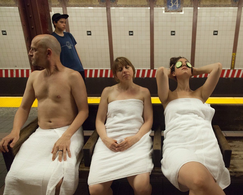 The idea came to the mob collective Improv Everything gave birth because in New York subway stations with the exception of the main one there are no air conditioners. Ironically, heat is not simply the result of the intrusion of outside temperatures, but a combination of hot air, as a byproduct of, yes, you guessed it, train air conditioners. And if New Yorkers had to heat by now bear stoically, they can also release something healthy from the body this way sweat, before the train takes them to their desired route.