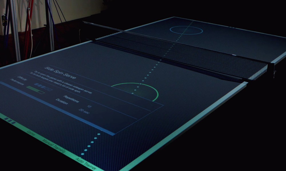 Thomas Mayer has created an interactive table tennis table that is the perfect training aid for a table tennis player. By following the player and projecting it onto the ping pong table, it communicates useful information and exercises in the hope that we will develop into a better player.