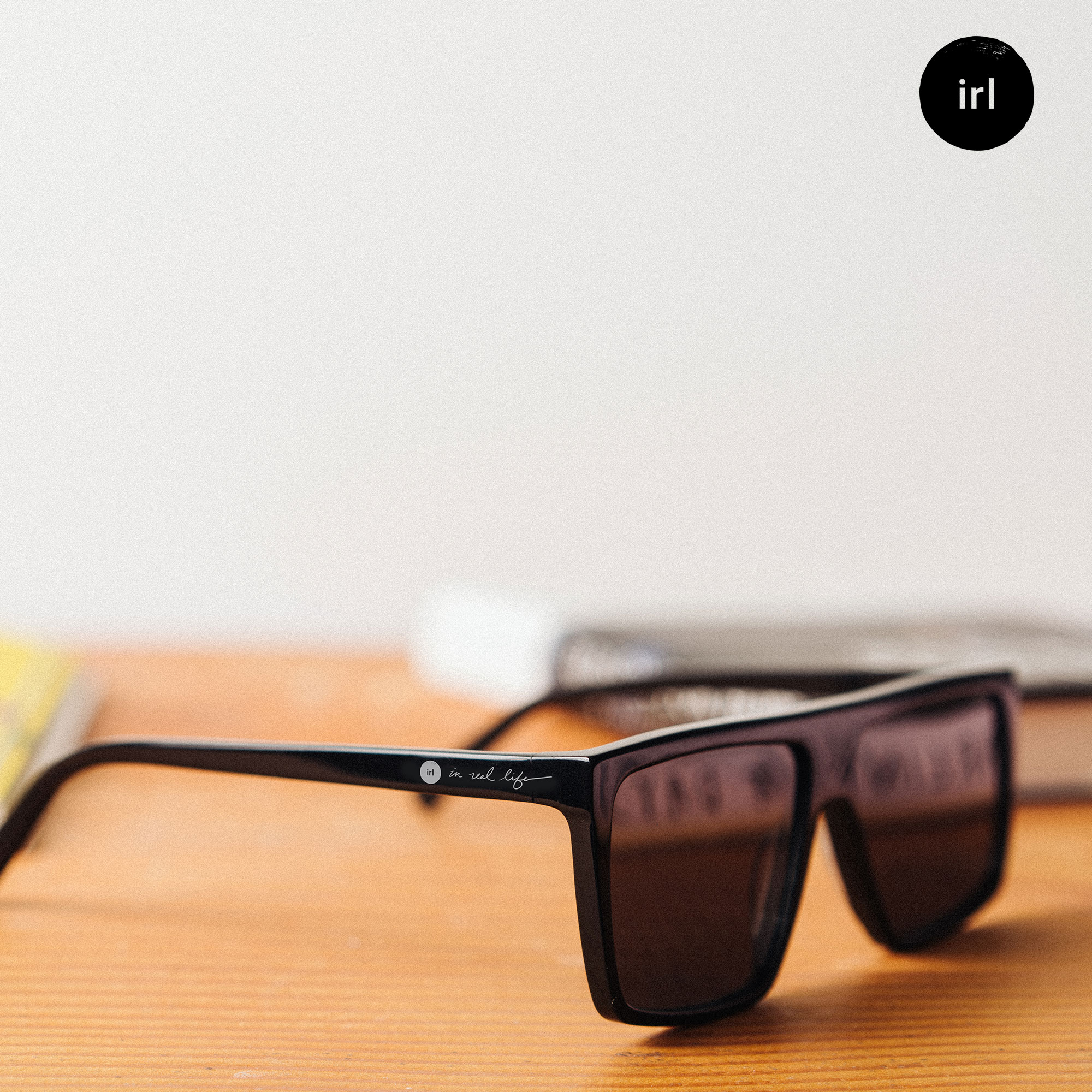 IRL glasses look like sunglasses, and indeed they can be used for that purpose, but their power also lies in blocking out the ads that are bombarded with them via LCD or LED advertising screens.