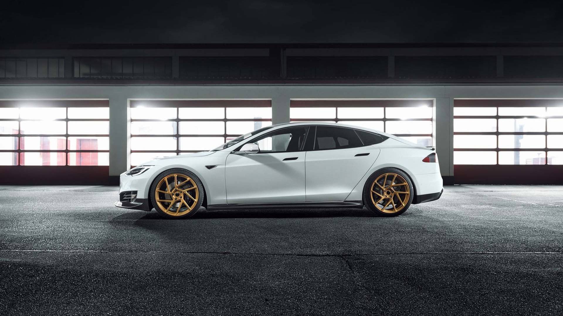 Novice's design ends with 21-inch alloy wheels, which this time are dressed in golden color. They are made in cooperation with an American company Vossen, which have a great reputation in the world of alloy wheels. If you're not really enthusiastic about the gold color, don't worry, you can choose from any 72 different colors, among which you will surely find a suitable one for you. Novitec also tackled the chassis, where you can change its height by 40 mm and you can choose between three levels of shock absorber hardness. All this at the push of a button. A carbon-ceramic brake package is also available in two sizes. Novitec did not play with the engine and drive, which is not even necessary, as the serial Tesla S accelerates from 0 to 100 km/h in just 2.5 seconds.