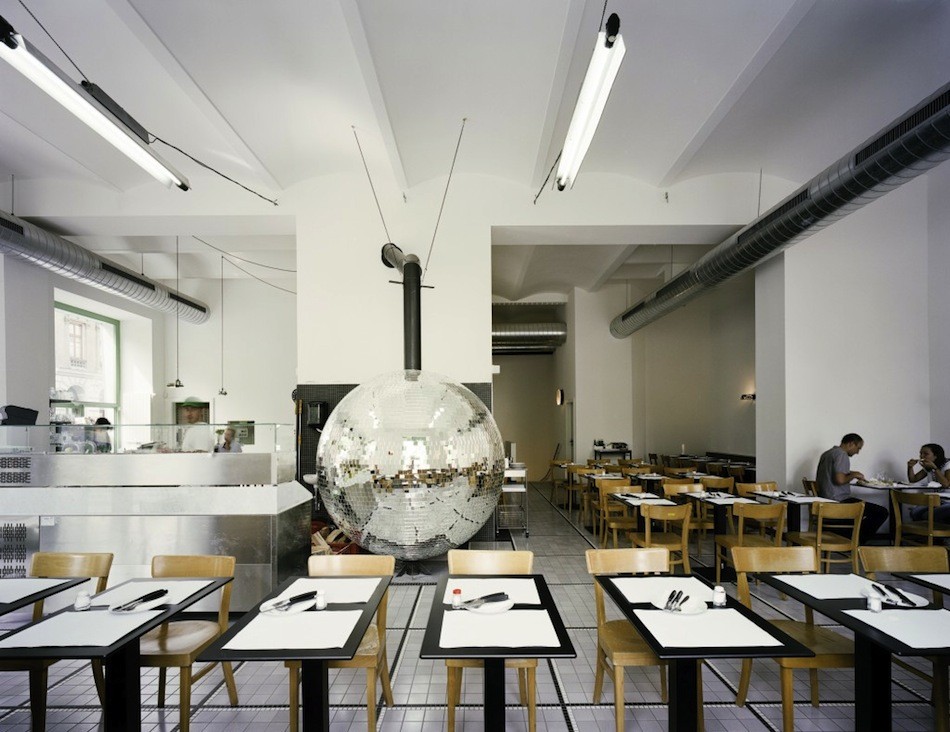 Austrian architect Lukas Galehr, a member of the design collective Madam Mohr, this time the atmosphere is Viennese pizzeria Disco Volante seasoned with a very special creation.