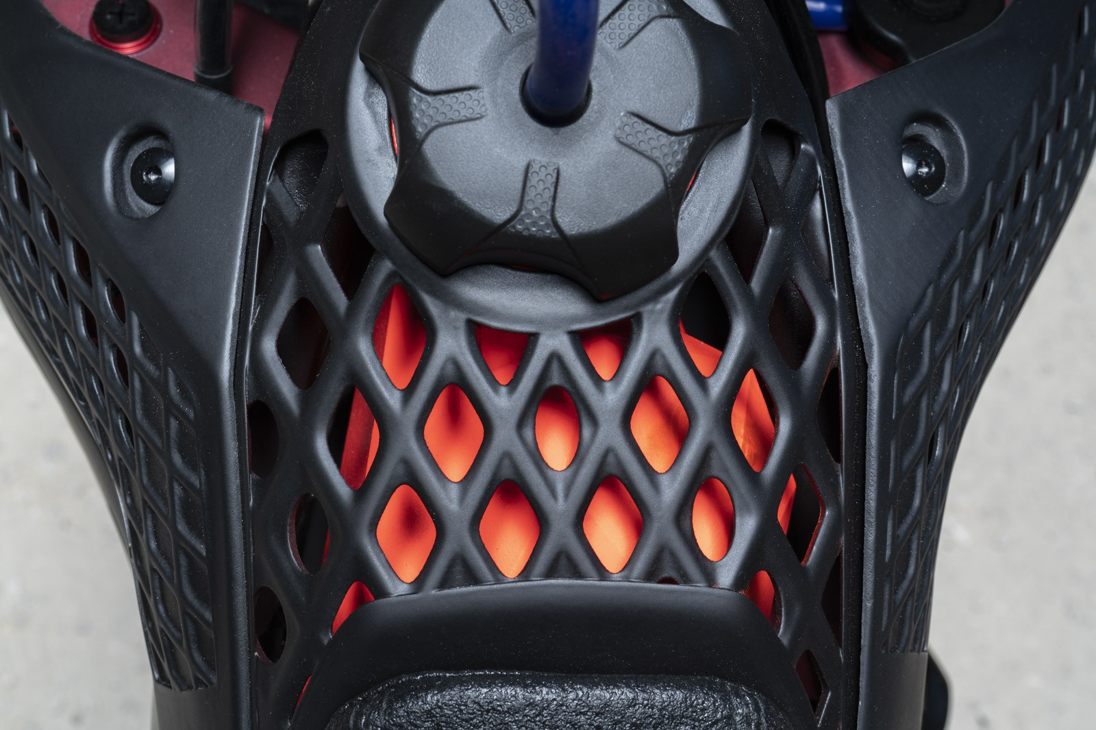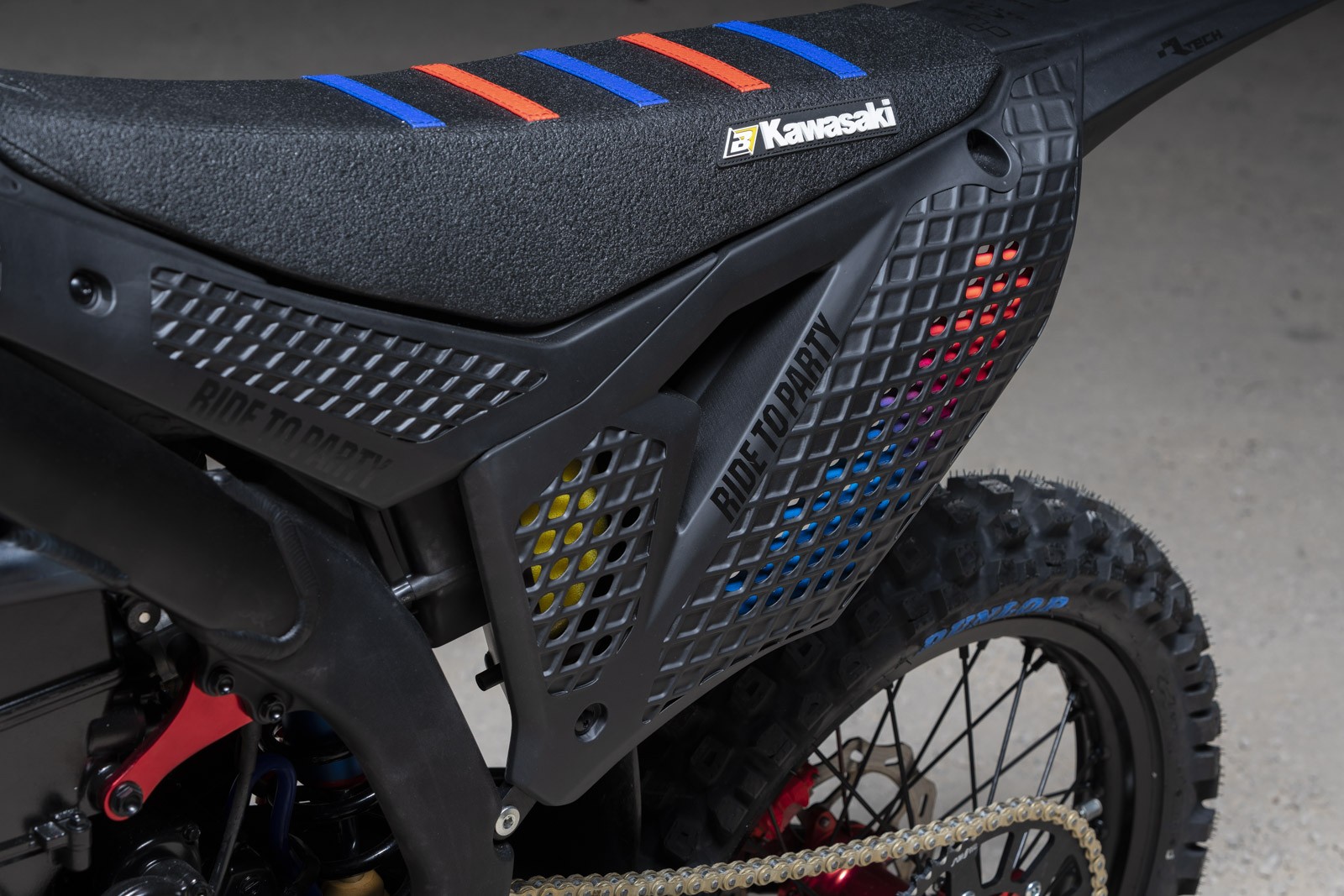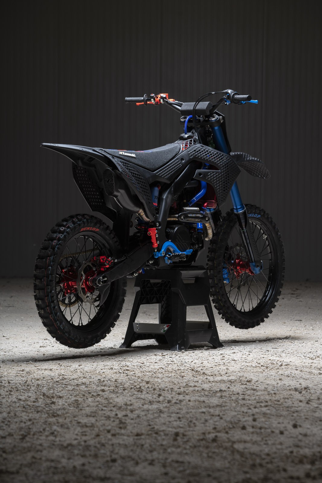 When former pro motocrosser Alvaro Del Farra's imagination and 3D printing technology come together, the Kawasaki KX 450 3D Core by Del Farra Motocross Beast is created – the 'core' has blue and red paintwork to represent the arteries and aortas of the 3D-printed beast.