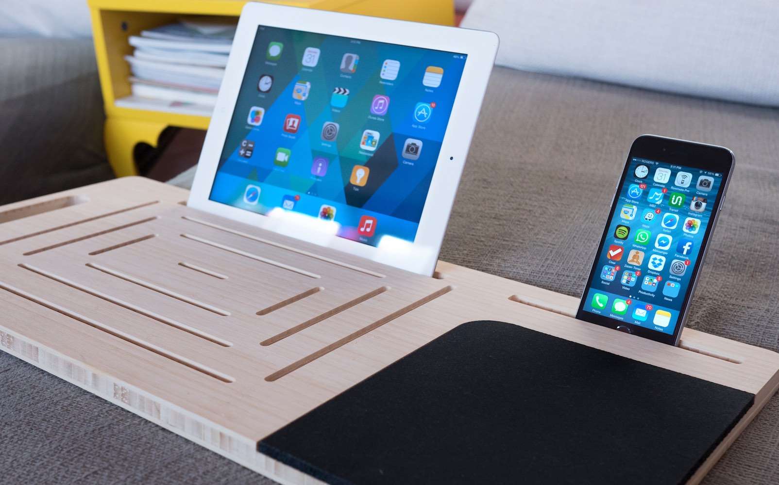Laptop, mouse, smartphone, tablet. If we don't have a storage surface, such as a desk, where we can arrange everything in an efficient manner, everything is one big chaos. That's why we love the idea of the LapPad mobile stand (pad and stand) so much, which elegantly solves the problem of managing multiple mobile devices at the same time when away from the desk.