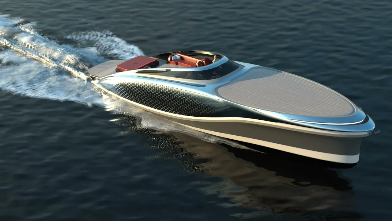 Lazzarini Design Studio Embryon concept speedboat nas with its imposing image and "transparent" the carbon hull takes over in an instant. But it is transparent only from the inside, and the outside part acts as a mirror. Only this provides passengers with protection from prying eyes, while only they can enjoy an unobstructed view of the vast sea.