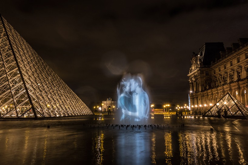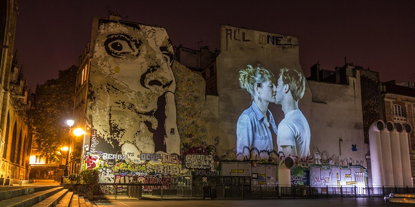 Just over a year ago, French designer Julien Nonnon projected digital graffiti in the form of wild animals in a hipster guise onto Parisian buildings. This time, he projected couples kissing in the French style onto the facades of the French capital.