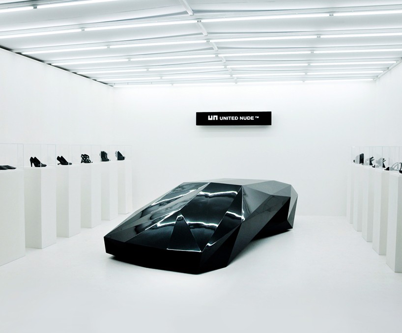 Lo Real Concept Car is an abstract version of the model Lamborghini Countach from the 1970s (by Marcello Gandini), which was prepared by a Dutch footwear brand United Nude. It is part of the Lo res project, which the brand completes with faceted versions of objects, such as chairs and shoes. Now a sports car is joining them.