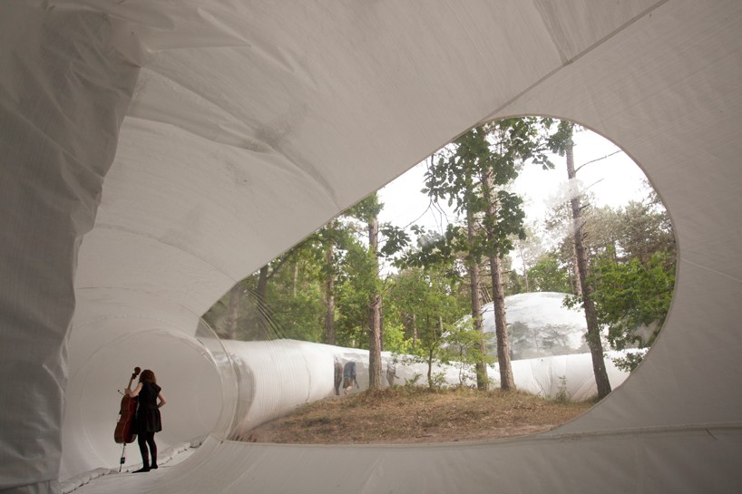 "Loud Shadows”, as it was called, is the result of the combined forces of artists of different directions; musical, dance and architectural. Kate Moore, The Stolz, Leine Roebana and Plastique Fantastique are the creators of this futuristic idea. Plastique Fantastique is a group of architects and designers from Berlin, which designs temporary architectural platforms of the same name, adapted to a specific environment. Namely, "Loud Shadows" is an inflatable transparent hall that allows contact with the environment at all times. The feeling is probably similar to being in a huge soap bubble listening to violin playing or admiring a dance performance.