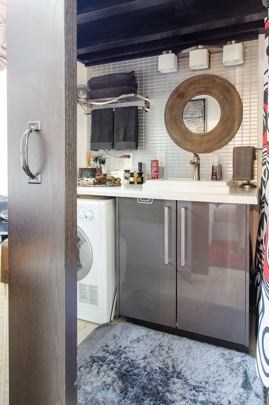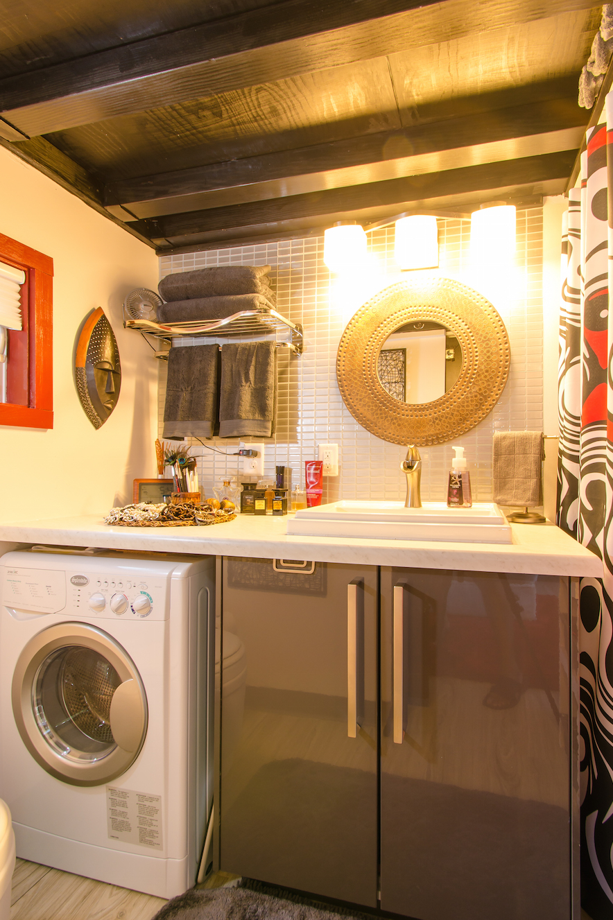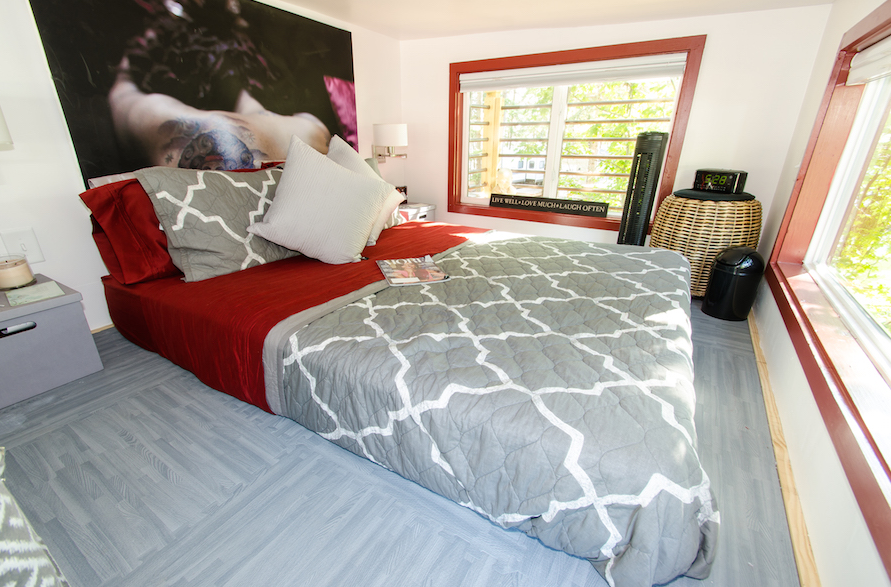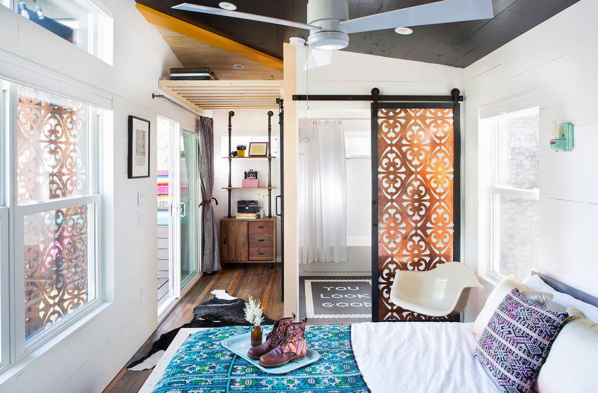 What the home lacks in size, it makes up for in style. Bohemian accents, such as sliding doors to the bathroom, bring a touch of modernity to the home.
