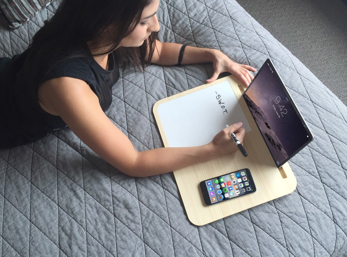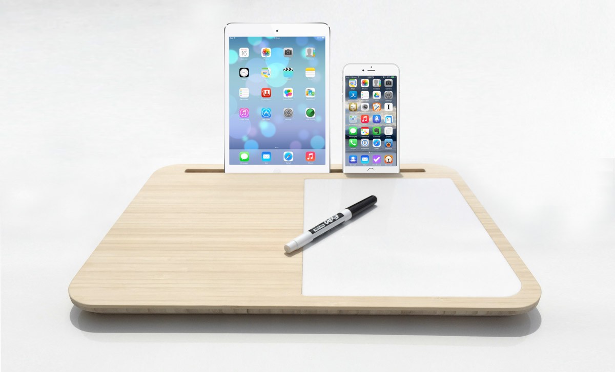 The minimalist tab base for tech gadgets is a simple solution for anyone who manages multiple tech gadgets while working. The aesthetically perfect accessory for the home or office allows you to control the iPad and iPhone as you wish while reading or writing on the white pad.