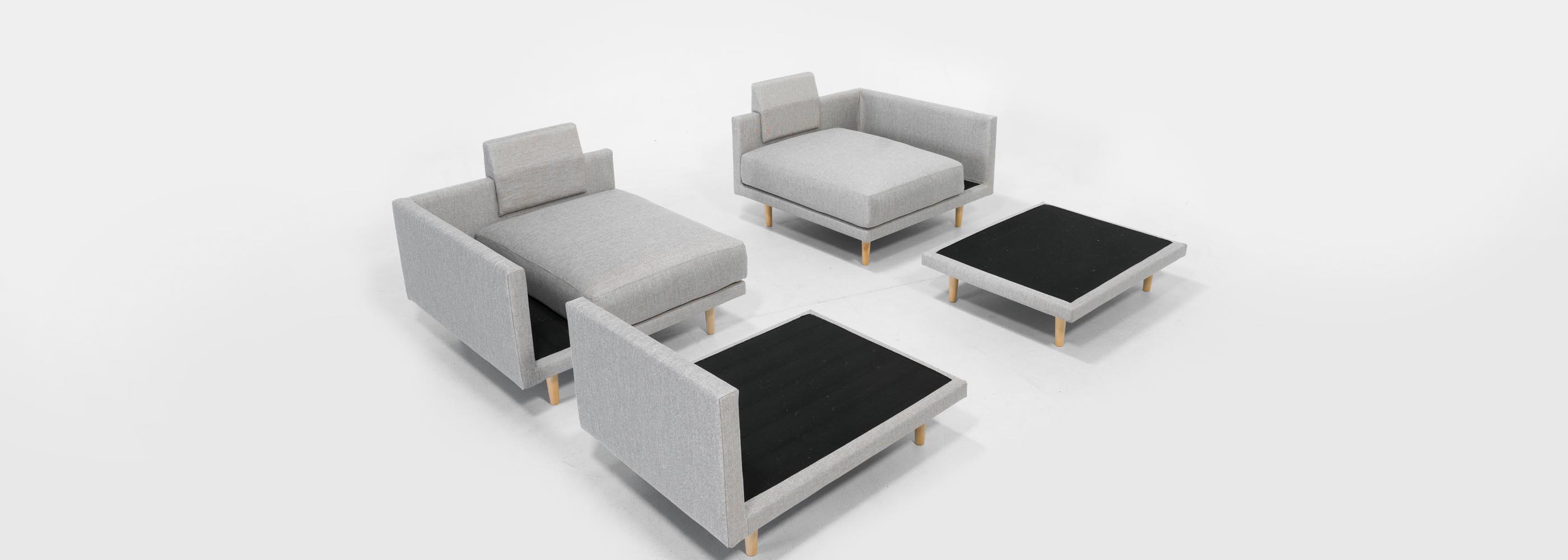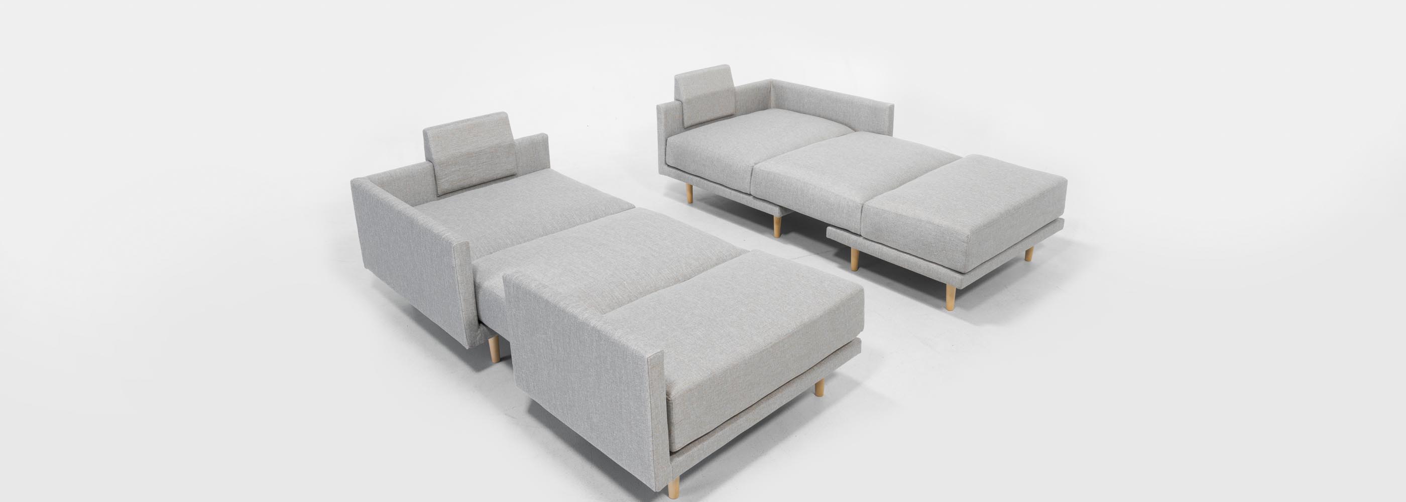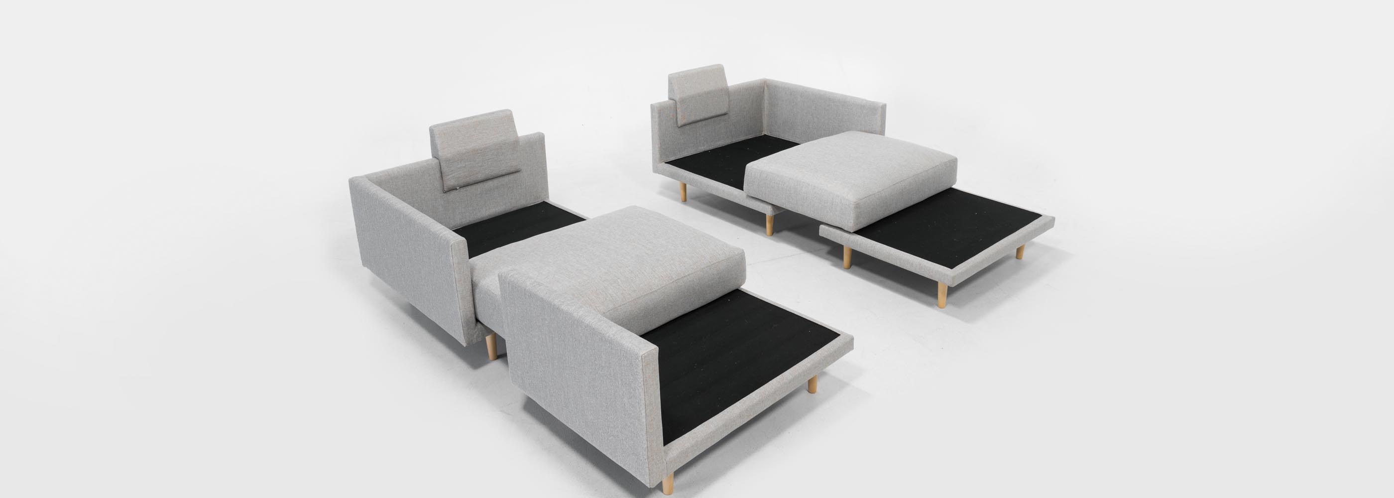 Brand Feydom bet on functional design and modularity of their products. This means that a piece of furniture, such as a sofa, can adapt to both your activities and daily routines. It can get big in the evening "movie bed", in the afternoon a recliner for reading or sofa with stool. Then, with a couple of moves, it turns into a sofa set in the center of the room enables communication in multiple dimensions. So one sofa that means also up to 7 or more layout options using the same elements, thus allowing customization scenarios beyond your imagination. If you have ever played with Lego blocks, then you will enjoy the possibilities offered by Feydom seating systems.