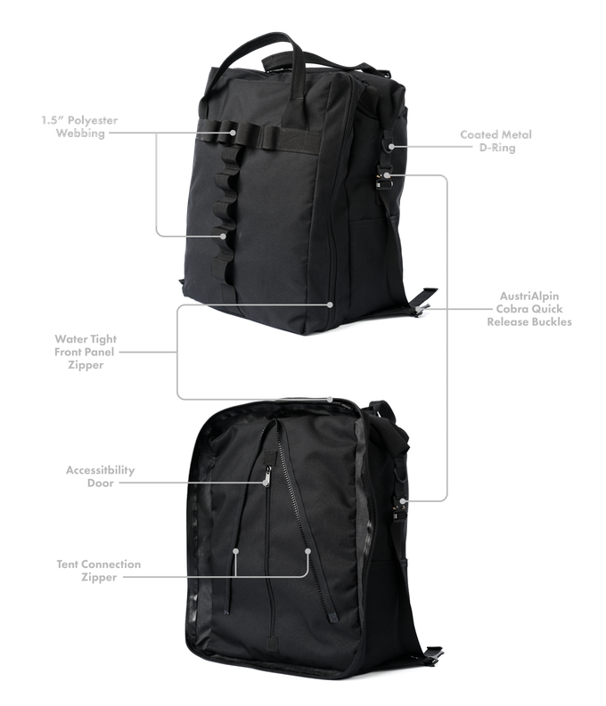 Moedal (judge for yourself which one is the better half) is the brand's backpack Tenative, while it is Totem theirs three-season tent for one person created just for said backpack. This keeps it under the zipper on the back, and it is assembled in just 30 seconds (the poles are already arranged inside the tent, which eliminates the otherwise awkward setup we are used to). Once it's standing, you can go for the duration of your stay apart, to keep the rest of your gear with you as you explore the surrounding area. If you don't unplug it, you can the contents of the backpack can also be accessed from inside the tent.