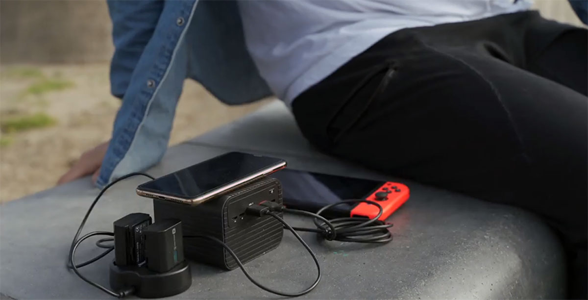 The charging station turns on at the same time 2 USB-C and USB-A ports each.