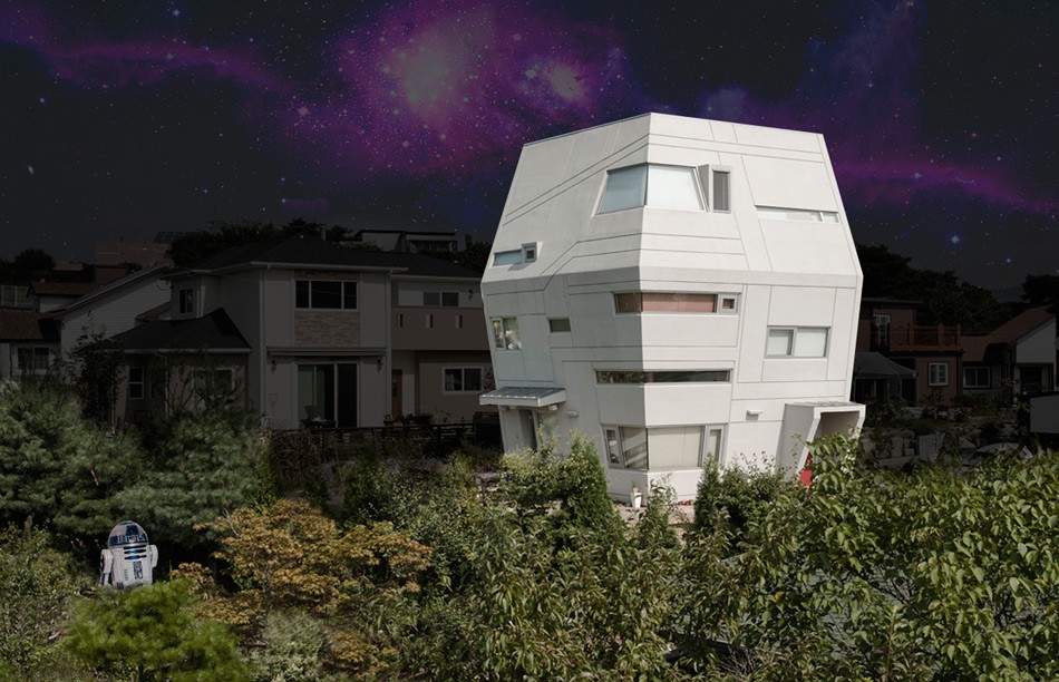 Moon Hoon Architecture Bureau in Korea recently finished building an unusual Star Wars-style house. The playful facade and lively interior remind us of the cult space series, and the special feature of the house is the secret space on the top floor, where a future Darth Vader or Jedi can train.