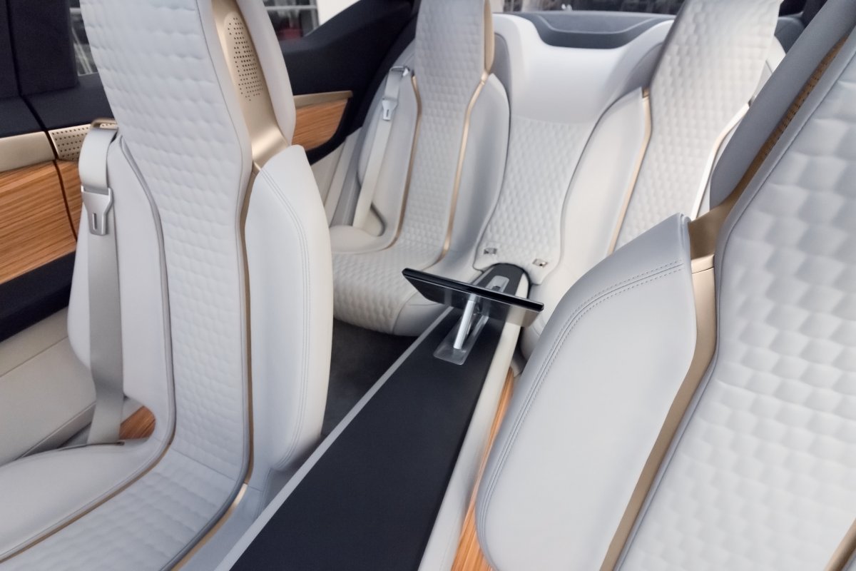 When the vehicle in autonomous driving mode – autonomous system ProPilot enables a fully automatic mode of steering, acceleration and braking - which relieves the driver in heavy traffic on highways and during long drives, the Nissan emblem lights up on a stretched mask V-motion, which signals to the surrounding area that the power of the vehicle is in the hands of technology. Leather seats have gold accents, which will not leave anyone indifferent.