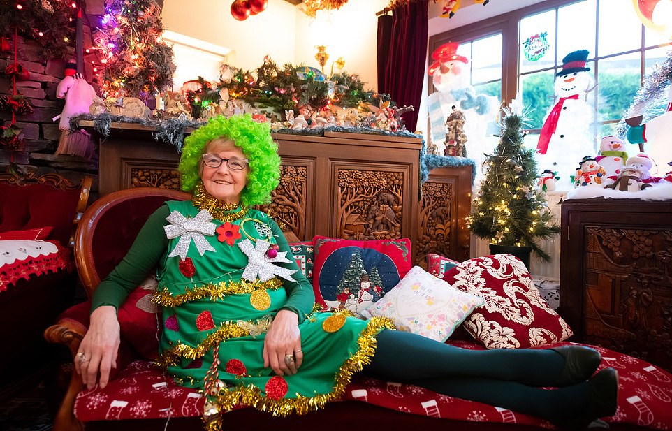 She decorated the home with more than 2,000 different decorations from all over the world, which she has collected for more than 50 years, and husband Keith, who is not the most enthusiastic about it, can only take a break from the festive atmosphere in the toilet. This is the only thing that is not decorated. Mrs. Jones currently has just inside 14,000 lights, and greets guests in front of the house reindeer.