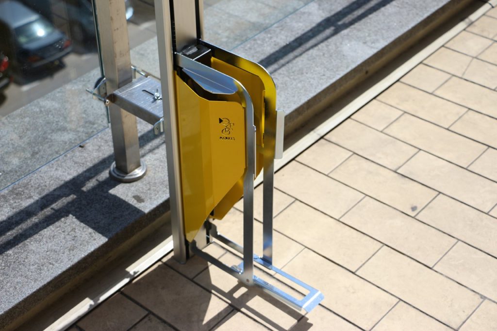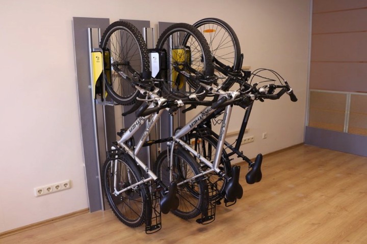Simply drive the bike with the front tire into the groove, hold it by the seat and in a second, it replaces the horizontal position with a vertical one. That's how easy it is to hang out with Parkis that works mechanically, not based on electronics.