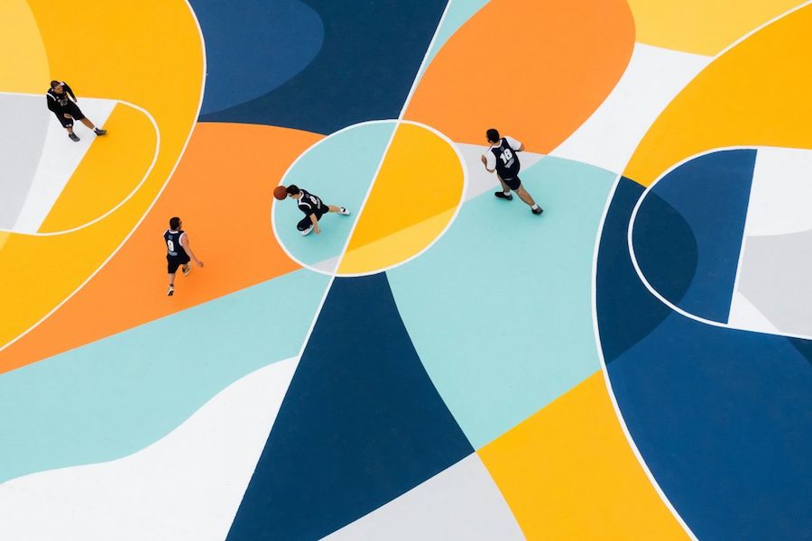 Basketball courts, indoor and outdoor, are more or less all the same. Parquet or concrete, marked with lines and any sponsors' markings or visiting teams. A Playground in Italy is a different kind of basketball court. It is an art installation, but it follows all the rules of the game.