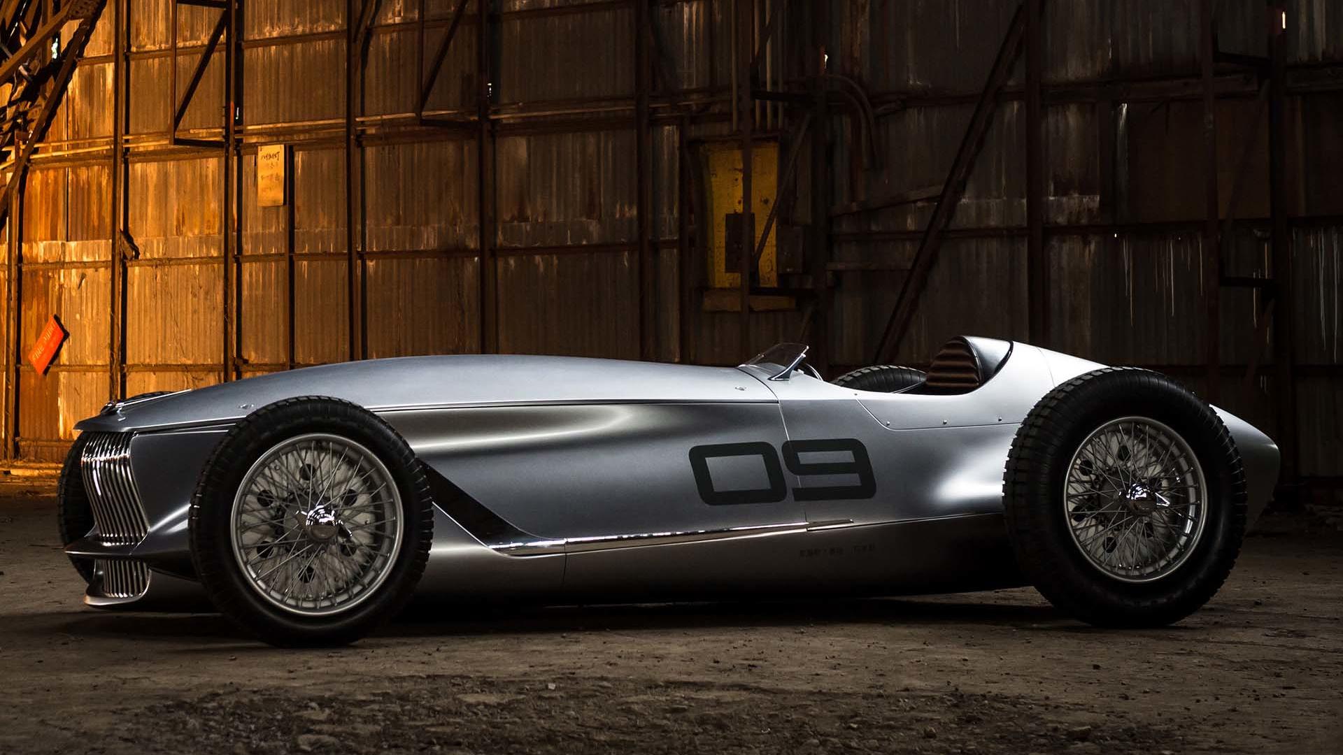 We are going back to the time of the 1930s, when cigar-like racing cars were awarded after the races for the big prizes. Without modern safety and other technology, racing was anything but a joke. Infiniti also remembered the era of these famous and above all brave men and produced the Prototype 9 retro racing car.