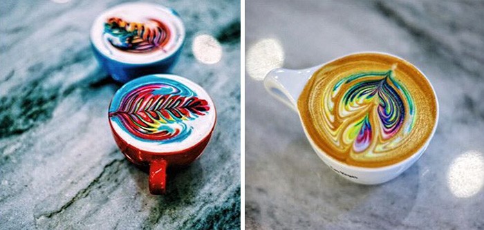 Preparation rainbow coffee does not require special barista skills, just food coloring, which you mix into the foamed milk, with which you pour the coffee. And there will be patterns that are absolutely fascinating.
