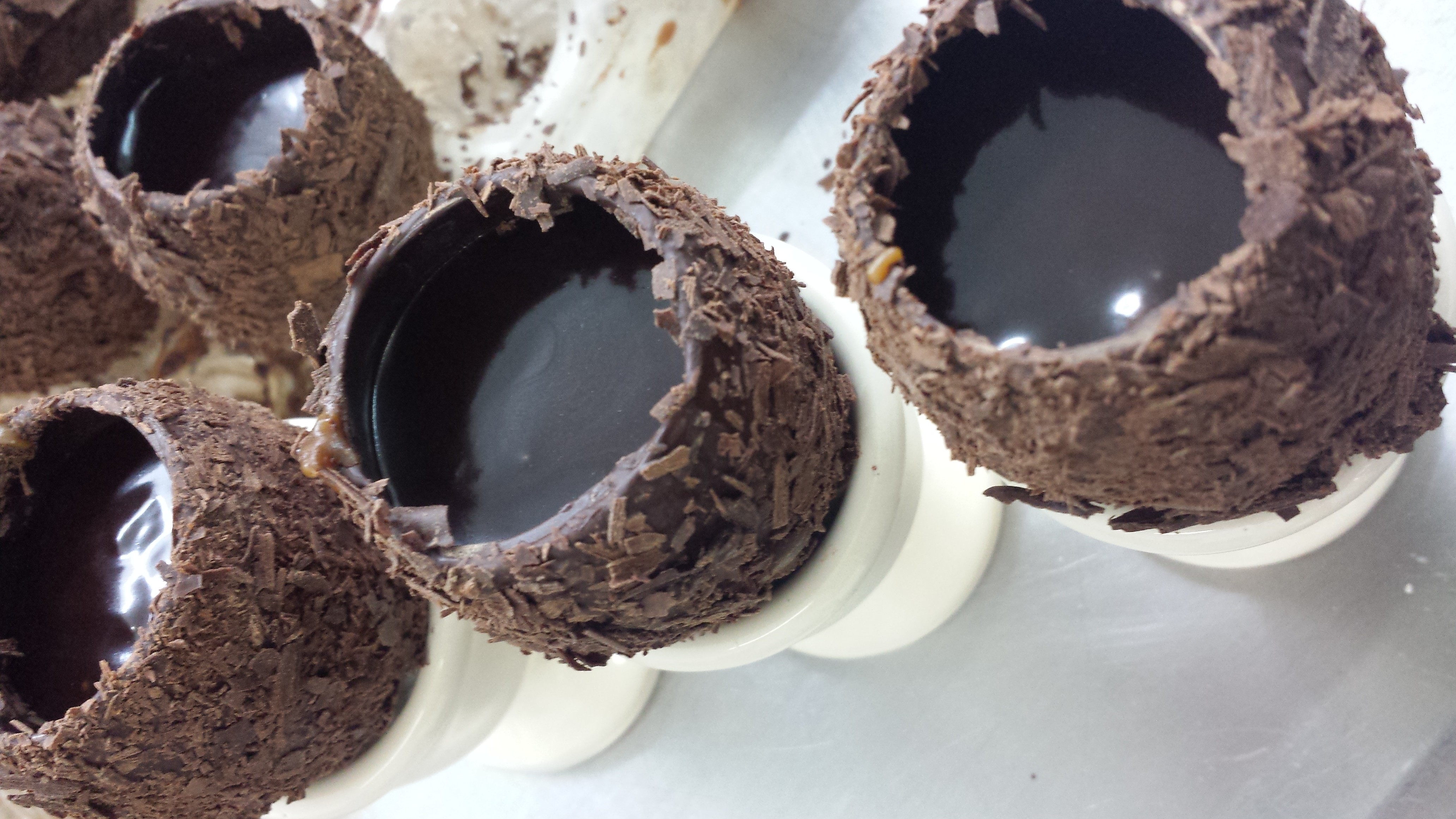 - Dip the shells in chocolate and sprinkle them with chocolate wafers