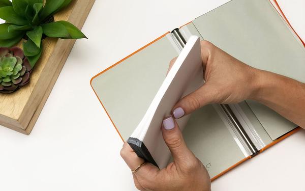 You know traditional notebooks – it doesn't matter how the notebook is made, when from it you tear out a leaf, you can never pin it back on. Unless, of course, it's about Rekonect Magnetic Notebook magnetic notebook, whose 'backbone' is from the constant magnet, and there is a band on the edge of each leaf of applied iron ink. Magnetic rails keep the sheet pinned in the notebook, but you can always we pull it out without tearing it, and if necessary we 'clamp' it again later.