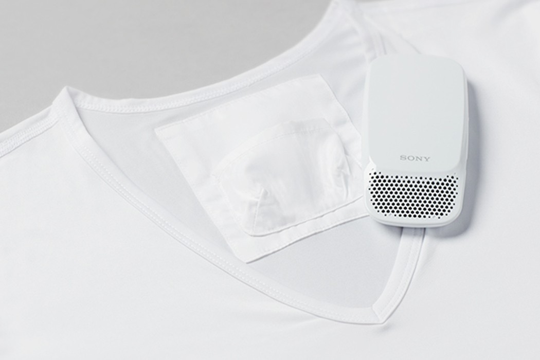Sony's Reon Pocket is a smaller air conditioning Bluetooth device, the size of a business card wallet, that slips into a special T-shirt with a pocket in the neck area. Connects with application thus allowing the user to control the temperature via their smartphone. It supports both iOS and Android, and its battery life is 90 minutes. The device, which weighs only 85 grams and, we must admit, somewhat resembles an Apple mouse, will be charged in two hours via the USB-C connector.