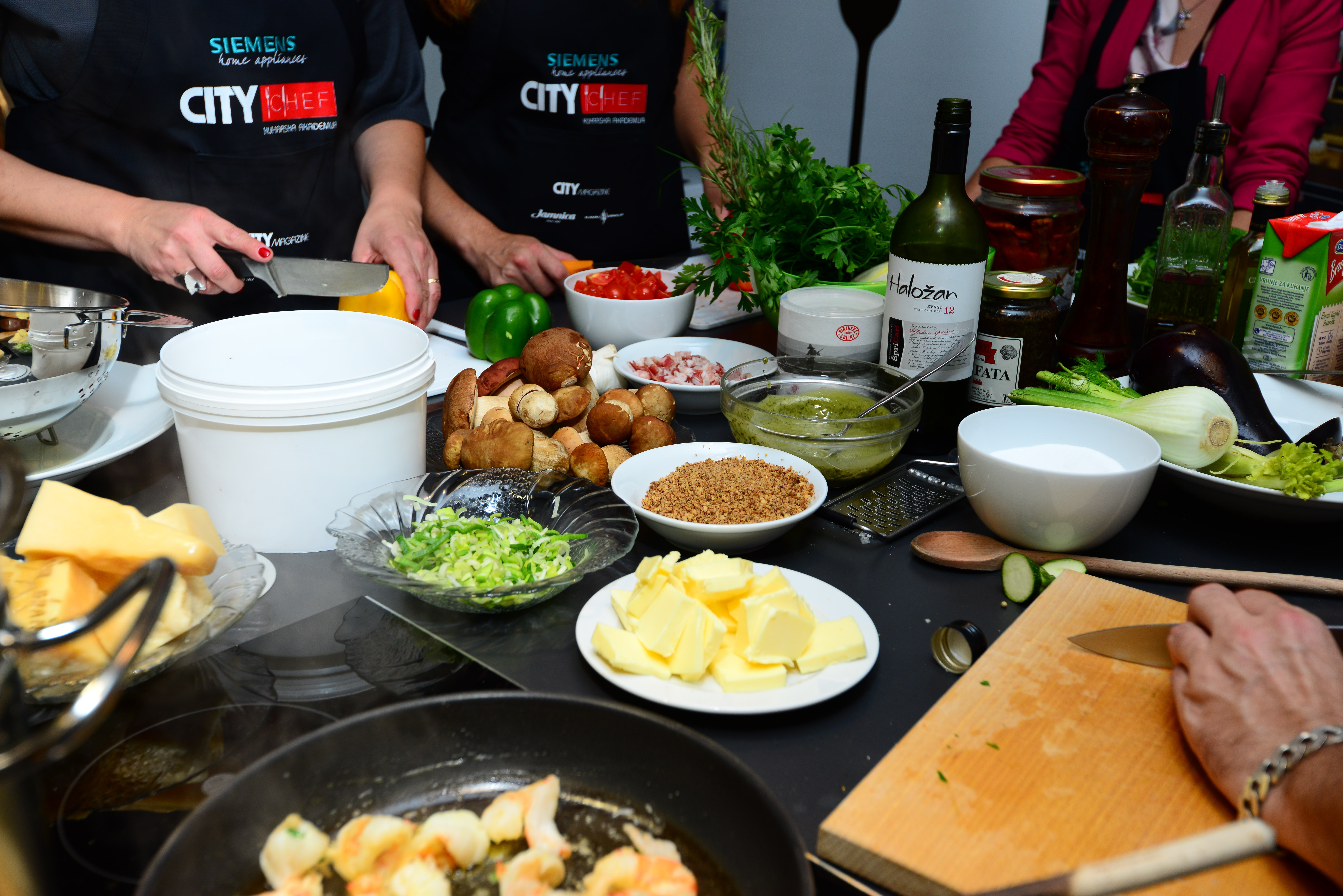 At this year's cooking academy, we are together with Dragan and Jožica from Kaval Group prepared wide noodles, ravioli, gnocchi... in the traditional way with a variety of sauces made from sun-dried tomatoes and courgettes, gamber, hazelnuts and porcini... Of course, a good drop of wine was not missing with the meal. The official water of the event was Pit.