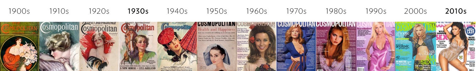 A retrospective of the evolution of world famous magazine covers is a fascinating insight into the evolution of some of the most famous influential and popular magazines, which have been and still are, in one way or another, dictating trends and influencing our lives, be it lightly Cosmopolitan, a little less light Vogue or "Welterweight" Team.