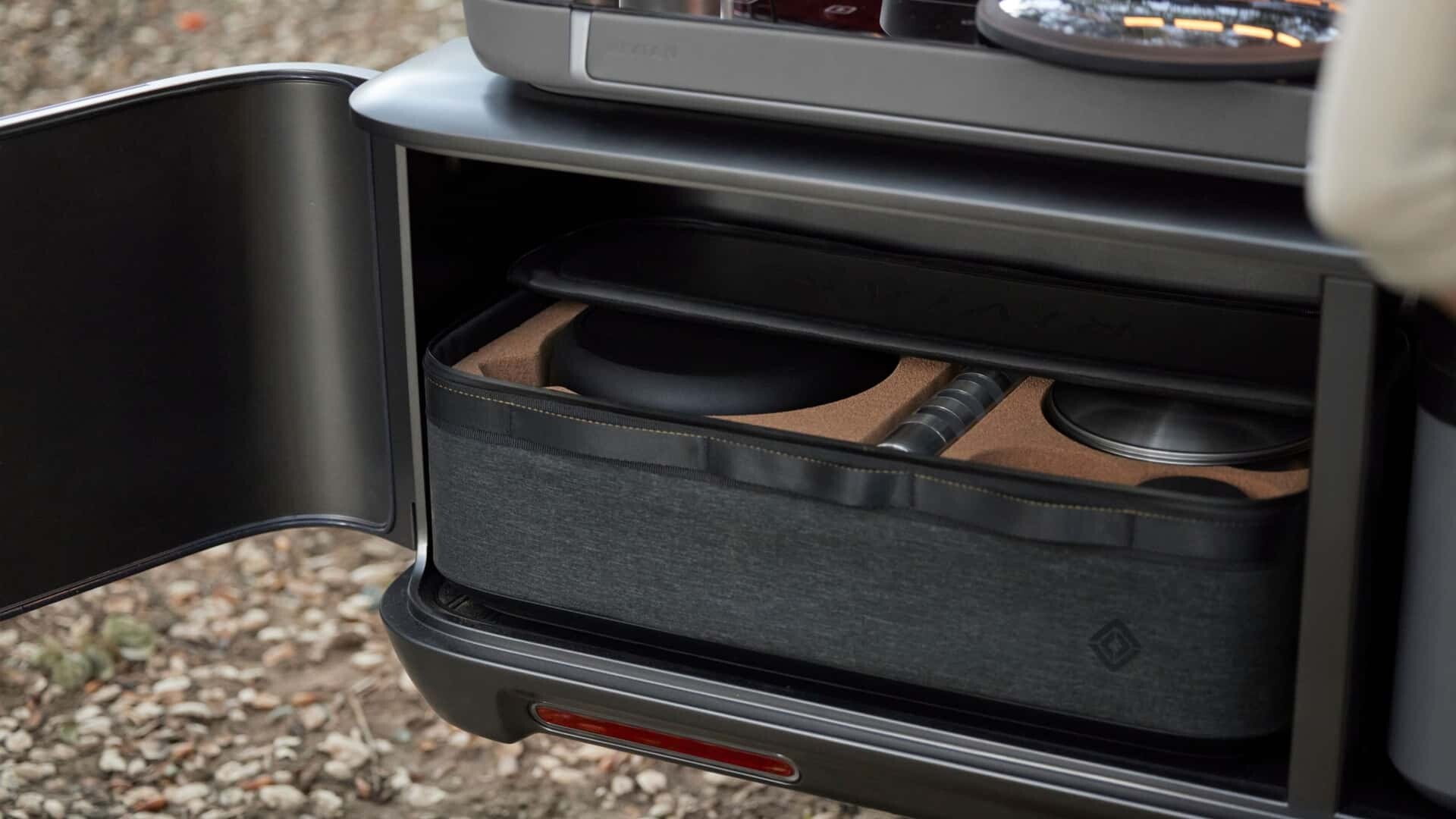 The R2 may not revolutionize roof box design, but its trade-in for a “Treehouse” roof-top tent trailer and hassle-free, tool-free rear rack mounting shows Rivian's dedication to the details that stand out.