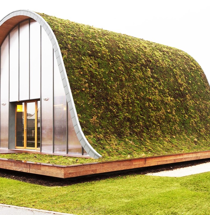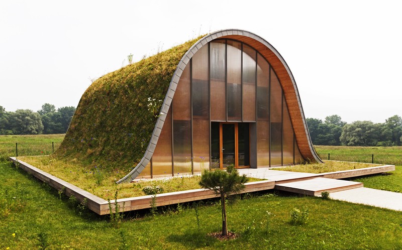 The French architect Patrick Nadeau signed an experimental project, which was behind the French company Reims HLM - Effort Reims, in which the main goal was to build an energy-saving living environment within the financial framework of up to 340,000 dollars. A grass-covered house with a corrugated roof is a perfect example of architecture that blends in with its surroundings.