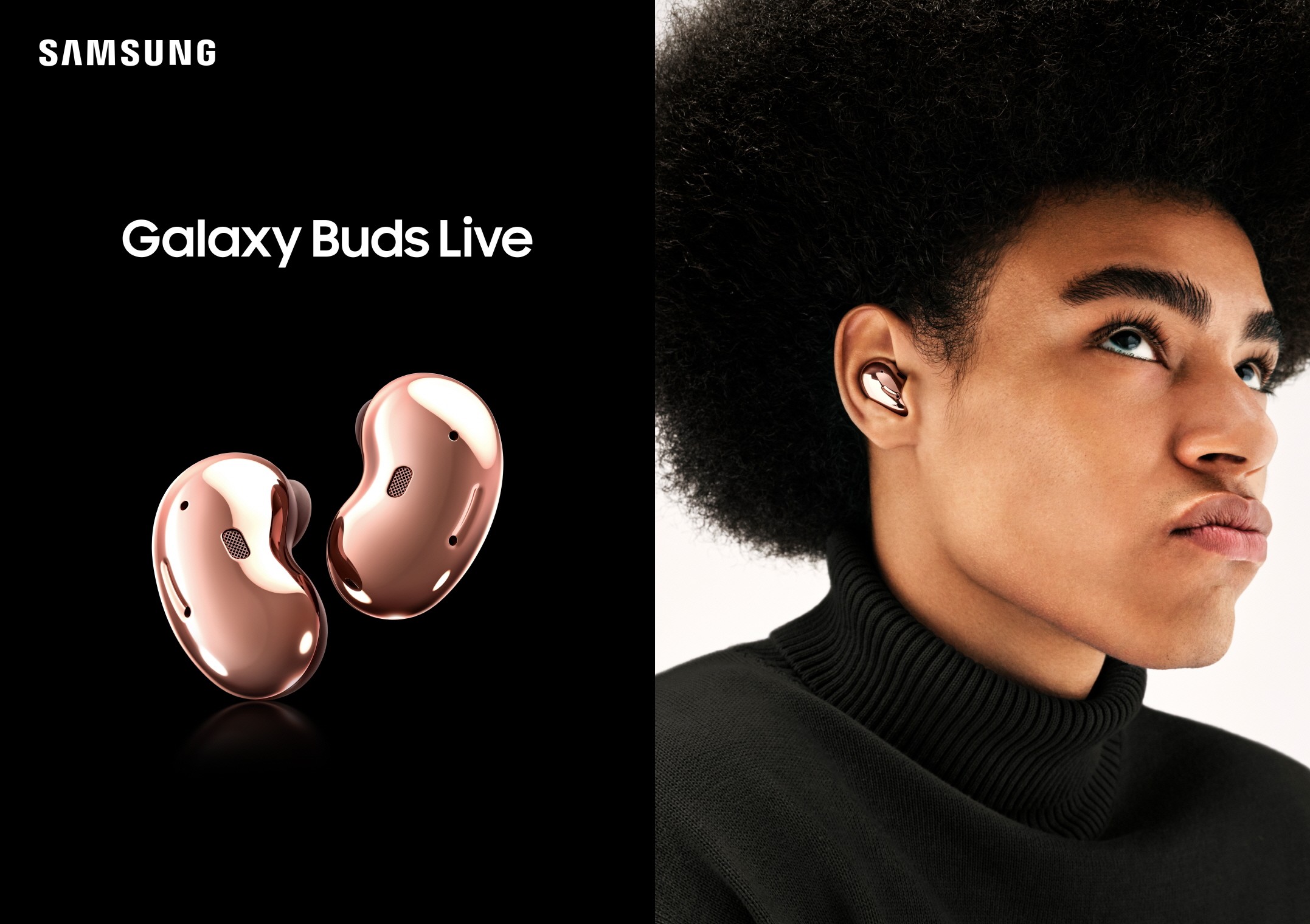 Samsung Galaxy Buds Live they defy conventional design - they have a unique design and are unlike other wireless headphones. It is Samsung reinvented the traditional design of wireless headphones – arranged the internal components horizontally instead of vertically. Headphones like that they do not protrude from the ears, which provides a more natural look. The ergonomic, tip-free design conforms perfectly to the shape of your ear, making the Galaxy Buds Live wireless headphones comfortable enough for all-day use, and you can further customize them with wings that come in two sizes.