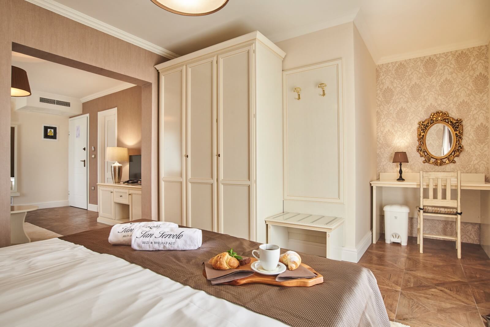 San Servolo Resort & Beer Spa can boast of 14 rooms and suites designed in two different styles – v neoclassical and in modern. All of them include a private bathroom, a terrace and all the necessary comfort that can be expected from a four-star hotel.