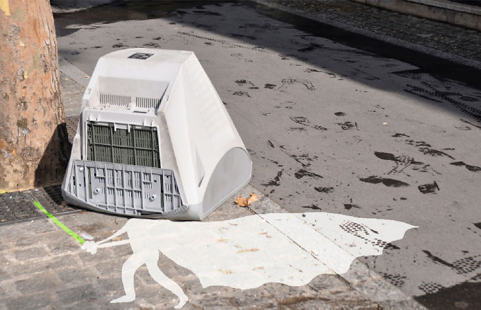 Sandra Estrade Boulet she is an illustrator who does not lack imagination. But he does not pour his ideas onto a white sheet of paper or canvas, but takes them as a motif photos of parisian streets, which she adds with images and ideas from her own imagination. The result is playful and lucky combinations that show Paris in a completely new light. Check how an ordinary shaft became a perfume, a cone a witch on a broom, a bunch of grass on the sidewalk a cheerleader, etc.