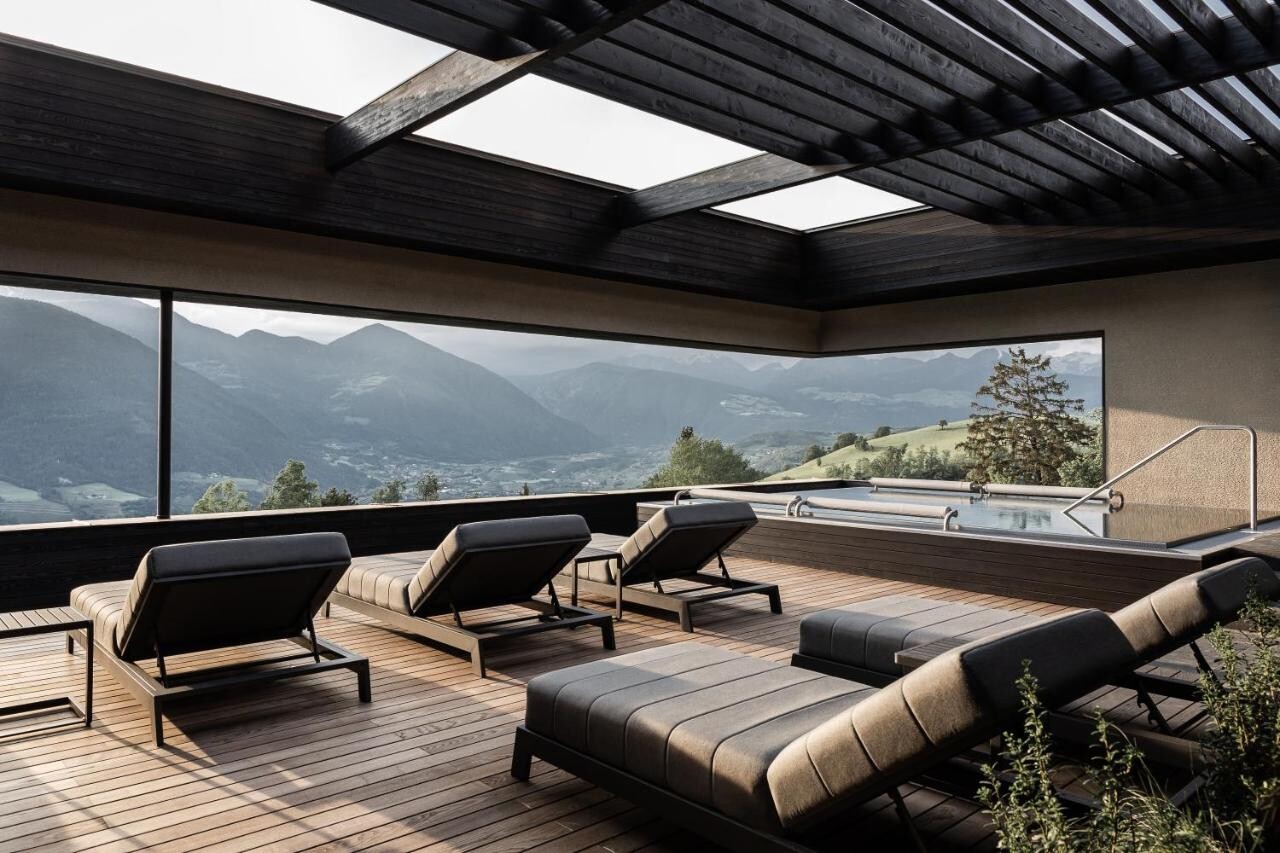 In the heart of Sant'Andrea, the hotel enjoys an unbeatable location on a sun-drenched hill with a wonderful view of the surrounding mountains and the Isarco valley. 62 apartments, decorated with hand-picked natural materials and bathed in warm shades, provide a charming view that complements the tranquility of the surroundings.