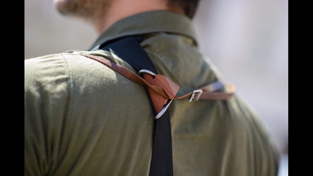 The Secura clip, which is manufactured from Slovenian wood (walnut, pear or maple) and metal (stainless steel), it reduces the pressure on both overloaded parts of the body and transfers the weight to the backpack (or bag) straps, and it also makes the photographer more mobile, as the camera bounces and wobbles less during movement, which is otherwise a constant practice if you don't have a special strap.