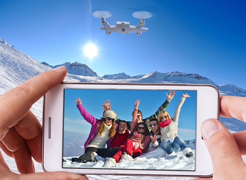 The case measures only in thickness 9 millimeters, which means you'll still be able to carry your phone in your pocket. With the Selfly drone app order what type of footage you want before take off or from which perspective it should record/capture footage that you can later process within the application. You can also control the drone yourself using your phone.
