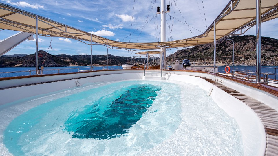 All those who would prefer to stay in the safe shelter of the yacht are at your disposal jacuzzi on deck, beauty salon, spa and sauna and fully equipped fitness center. Let's also add that the yacht boasts a gigantic master suite with a private terrace and jacuzzi.