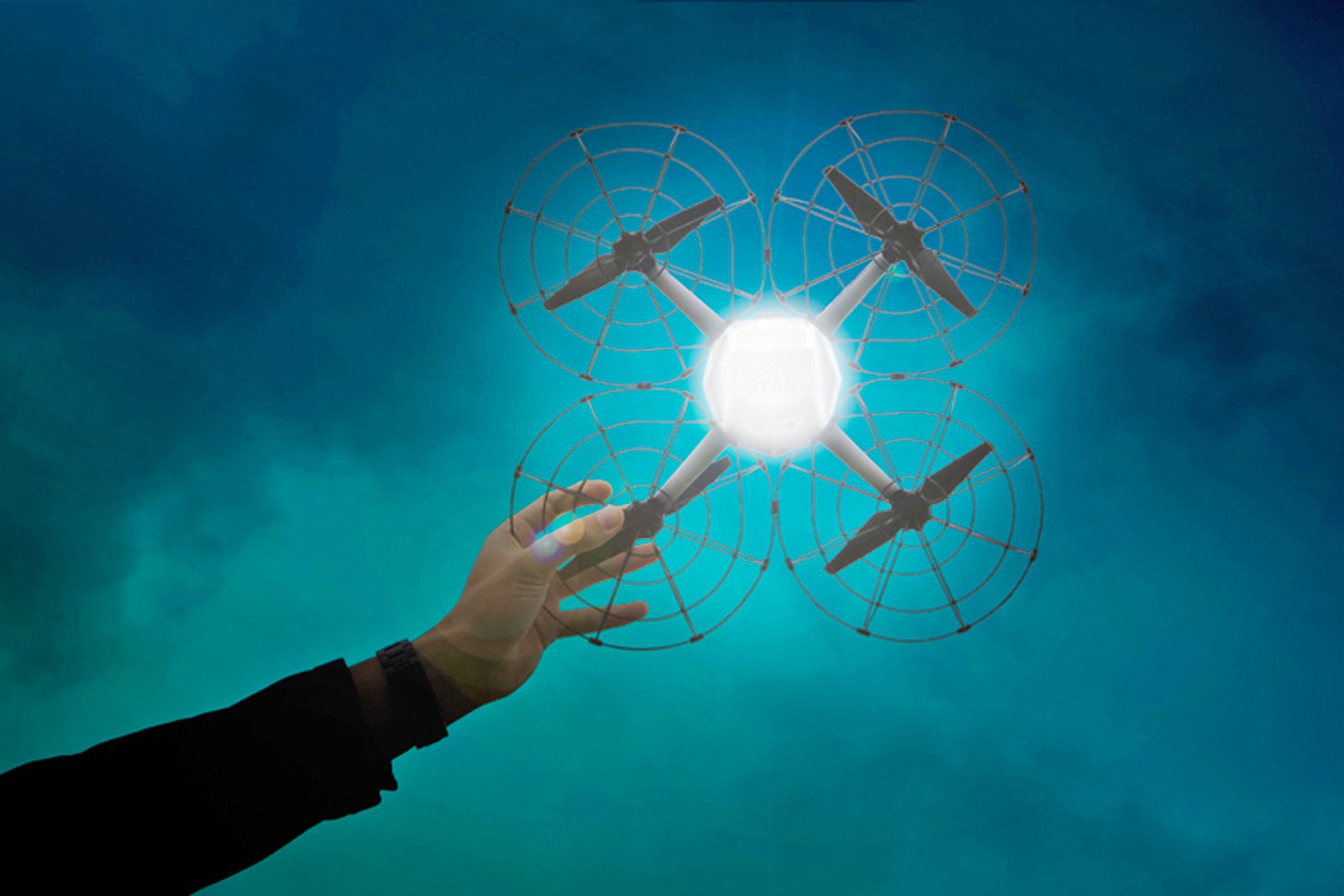 The only obligation of a 280-gram quadcopter (propellers are for safety in a cage, so in the event of a malfunction they do not injure anyone, and also prevent accidents like the one that happened to Enrique Iglesias) Shooting Star is that shines in different colors, and Intel developed the software, which allows a flock of drones to be in the air and can managed by only one person. The algorithm itself calculates the number of drones needed for light choreography.