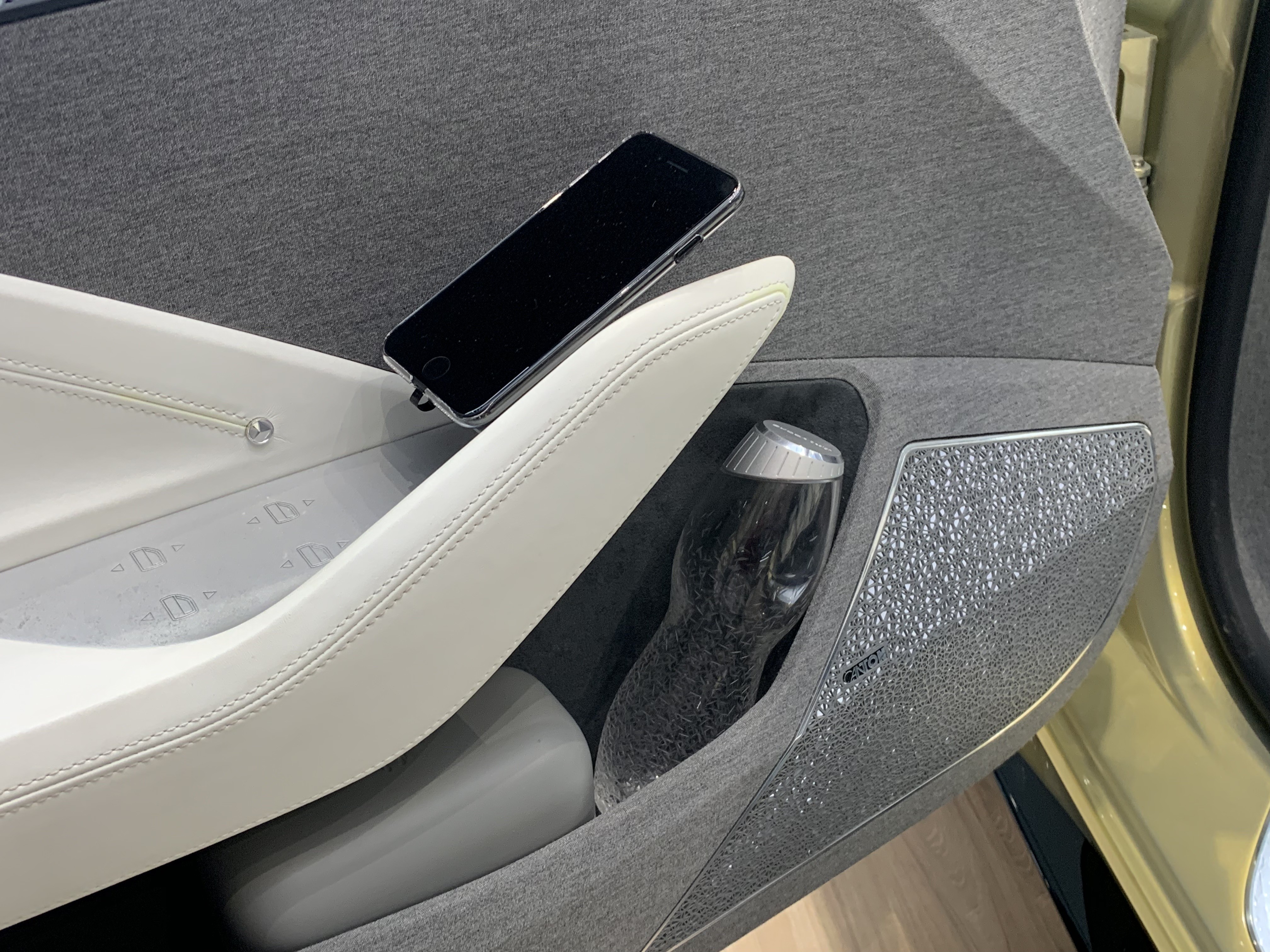 Shell-shaped seats they are rotatable, which makes getting in and out of the car easier. It provides access to information and entertainment content multiple touch screens, which are available to the driver and passenger. Each door has a cell phone compartment on the inside.