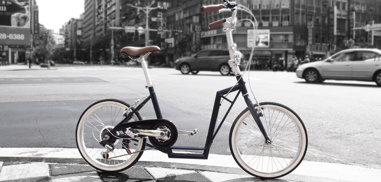 Sliders is a folding bike that is also a scooter. Its unique frame design without an upper cross tube offers the possibility to push it like a ski. Are you wondering where the usefulness of this hybrid is? It is a brilliant concept, especially for large cities where pedestrians and cyclists often share space. In such places (pedestrian zones, etc.) you usually have to push your bike alongside you, but instead you can now comfortably push it like a scooter, which is faster than walking, but still much safer for passers-by. Fold it with a slight kick in the pedal, and with the handlebars you can push it to the "resting place" like a manual lawnmower.
