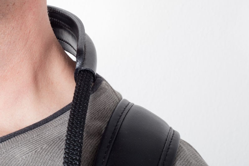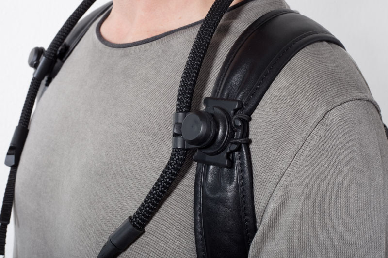 The SnapSnap Camera Strap consists of two different components. Magnetic clips, which fasten on the shoulder strap of the backpack, and a special attachment on the belt itself, which connect with the help of magnetism. If you're wandering around without a backpack, Karseda takes care of carrying it comfortably padded neck section.